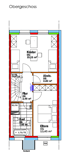 Ein Schlafzimmer für die Eltern, ein großes Kinderzimmer und ein Bad mit Tageslicht. Kurze Wege, klare Aufteilung.
